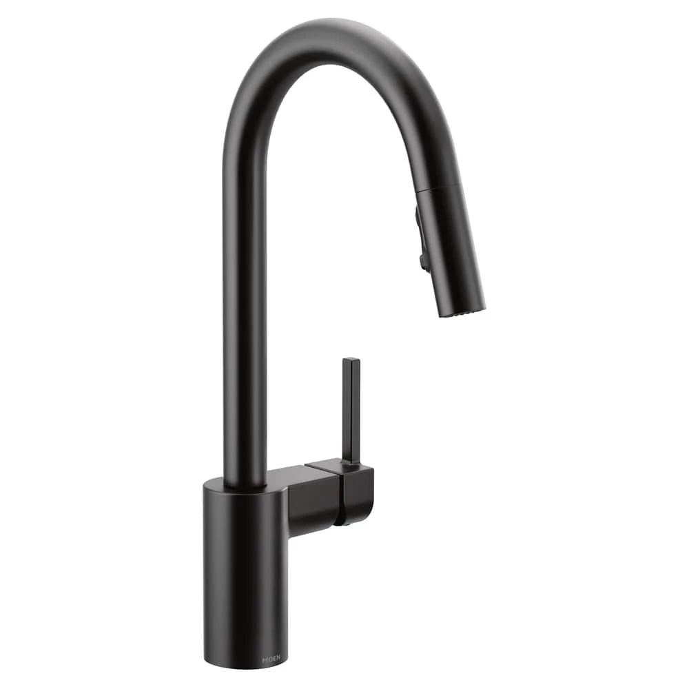 - Moen Align 1-Handle Modern Pulldown Kitchen Faucet features a matte black finish that adds a touch of sophistication to any room