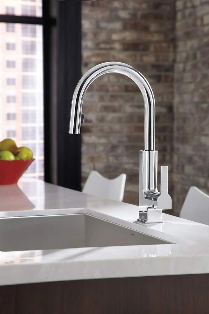 - Moen Align 1-Handle Bar Faucet with Reflex features a chrome finish that is highly reflective for a mirror-like look that works with any decorating style