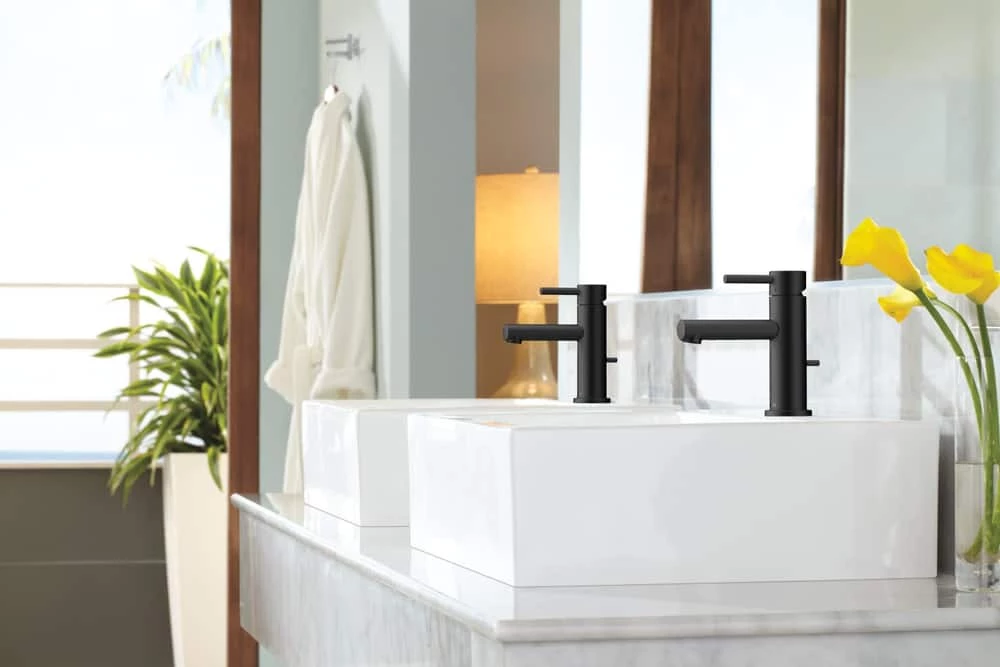 - Moen Align 1-Handle 1-Hole Lavatory Faucet features a matte black finish that is the perfect complement to modern spaces
