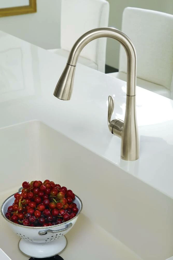 - Equipped with the Reflex™ system for smooth operation, easy movement and secure docking of the pulldown/pullout spray head