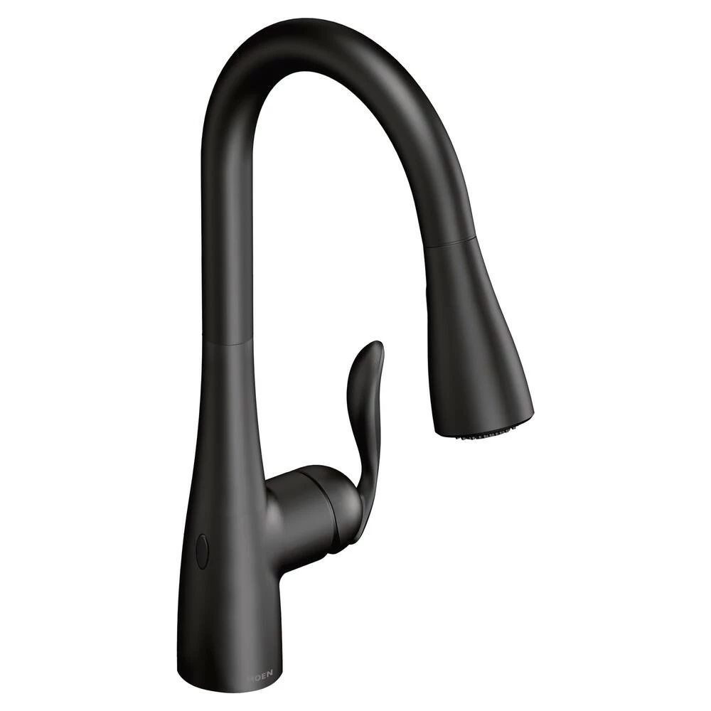 - Moen Arbor MotionSense 1-Handle Pulldown Kitchen Faucet features a matte black finish that adds a touch of sophistication to any room