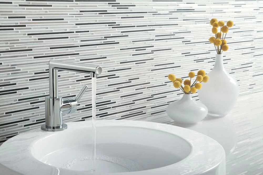 - Moen Arris 1-Handle 1-Hole Lavatory Faucet features a chrome finish that is highly reflective for a mirror-like look that works with any decorating style