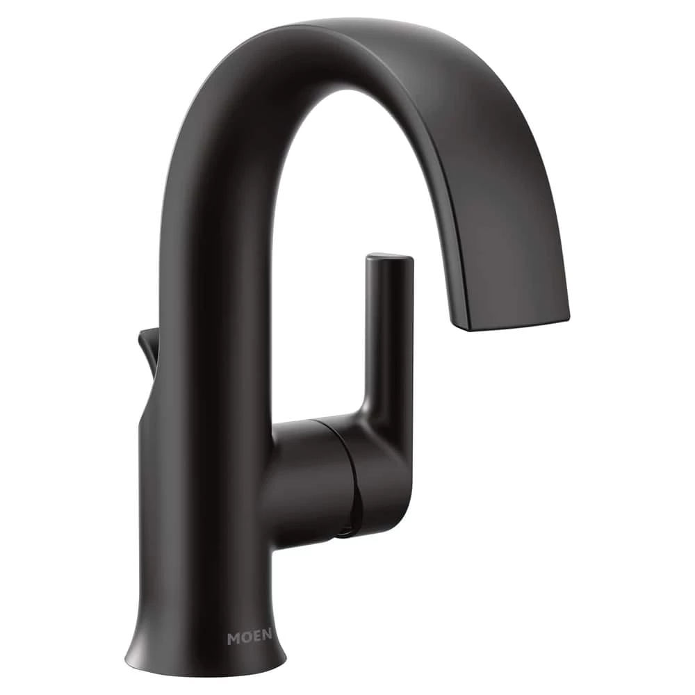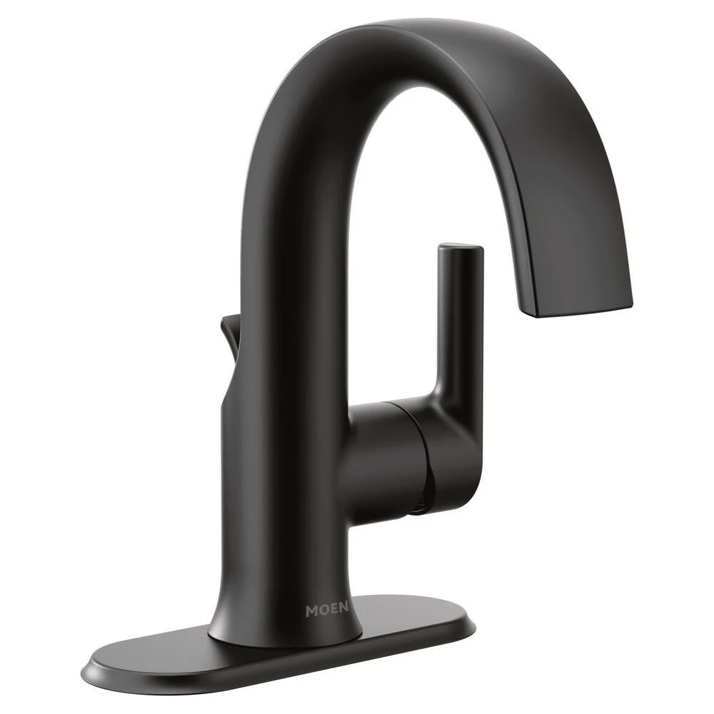 - Moen Doux 1-Handle Lavatory Faucet features a matte black finish that is the perfect complement to modern spaces