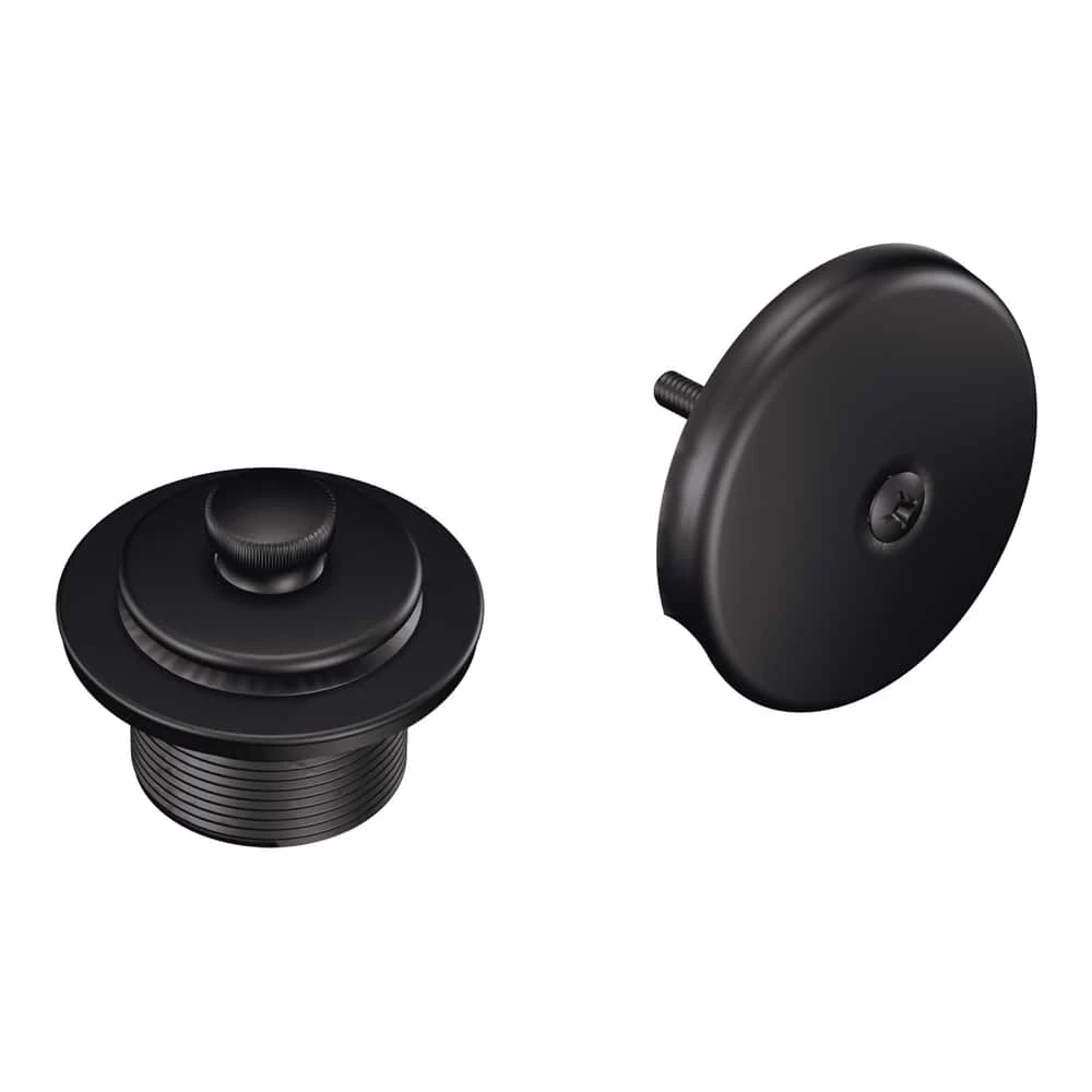 - Moen Push-N-Lock Tub and Shower Drain Kit features a wrought iron finish that gives your space a highly traditional feel, old world finish with striking light and dark accents