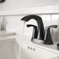 Moen Lindor Two-Handle High Arc Bathroom Faucet, Matte Black